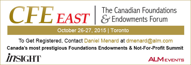 The Canadian Endowment & Foundations Forum runs from October 26 to 27 and is in Toronto. For more information you can contact Daniel Menard at (416) 642-6135 or email dmenard@alm.com As well here is a link to the program.