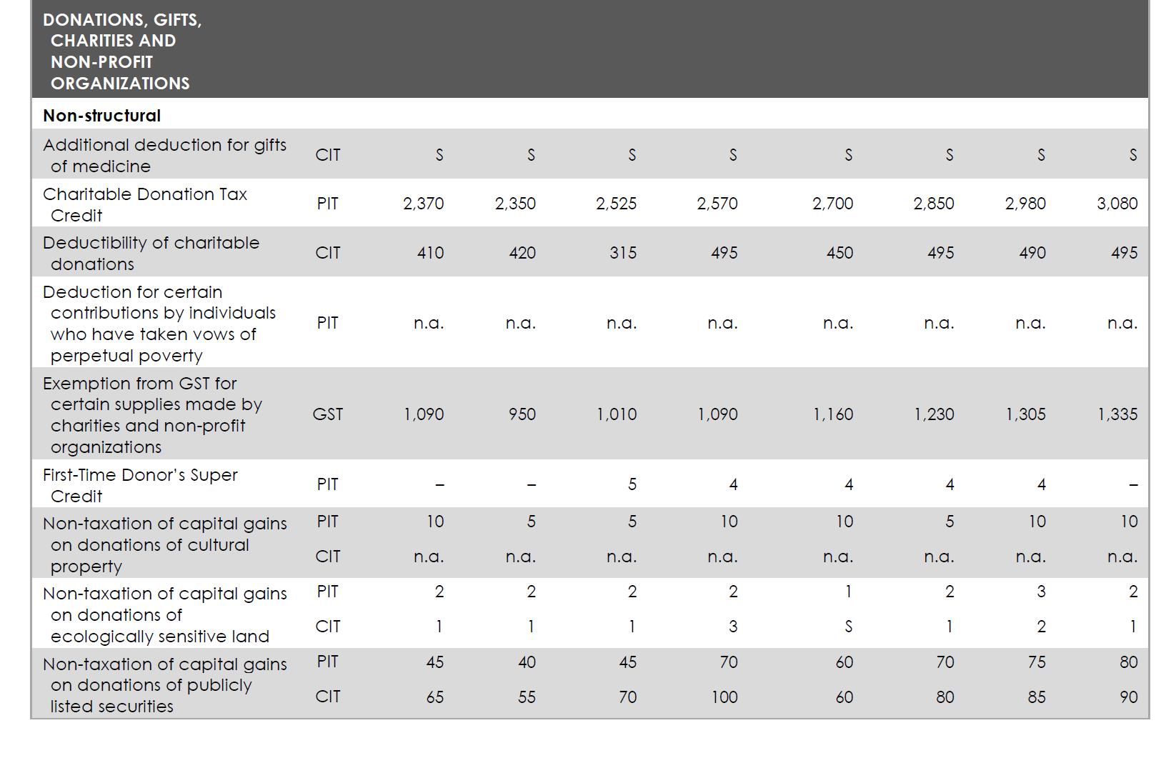 A number of the examples given of tax expenditures apply to charities: